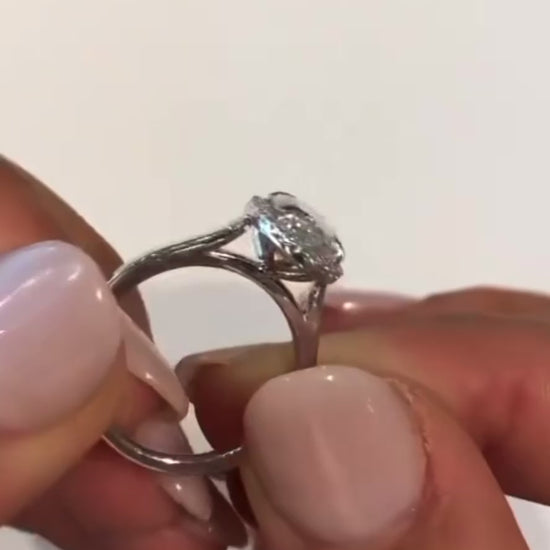 This elegant 3 carat crushed ice moissanite ring is a stunning addition to any jewellery collection. Crafted with precision and brilliance, this ring showcases the beauty of moissanite in a marquise cut. Enjoy a luxurious and sophisticated look with this must-have piece. Featuring a sparkling marquise halo to perfectly frame the centre stone
